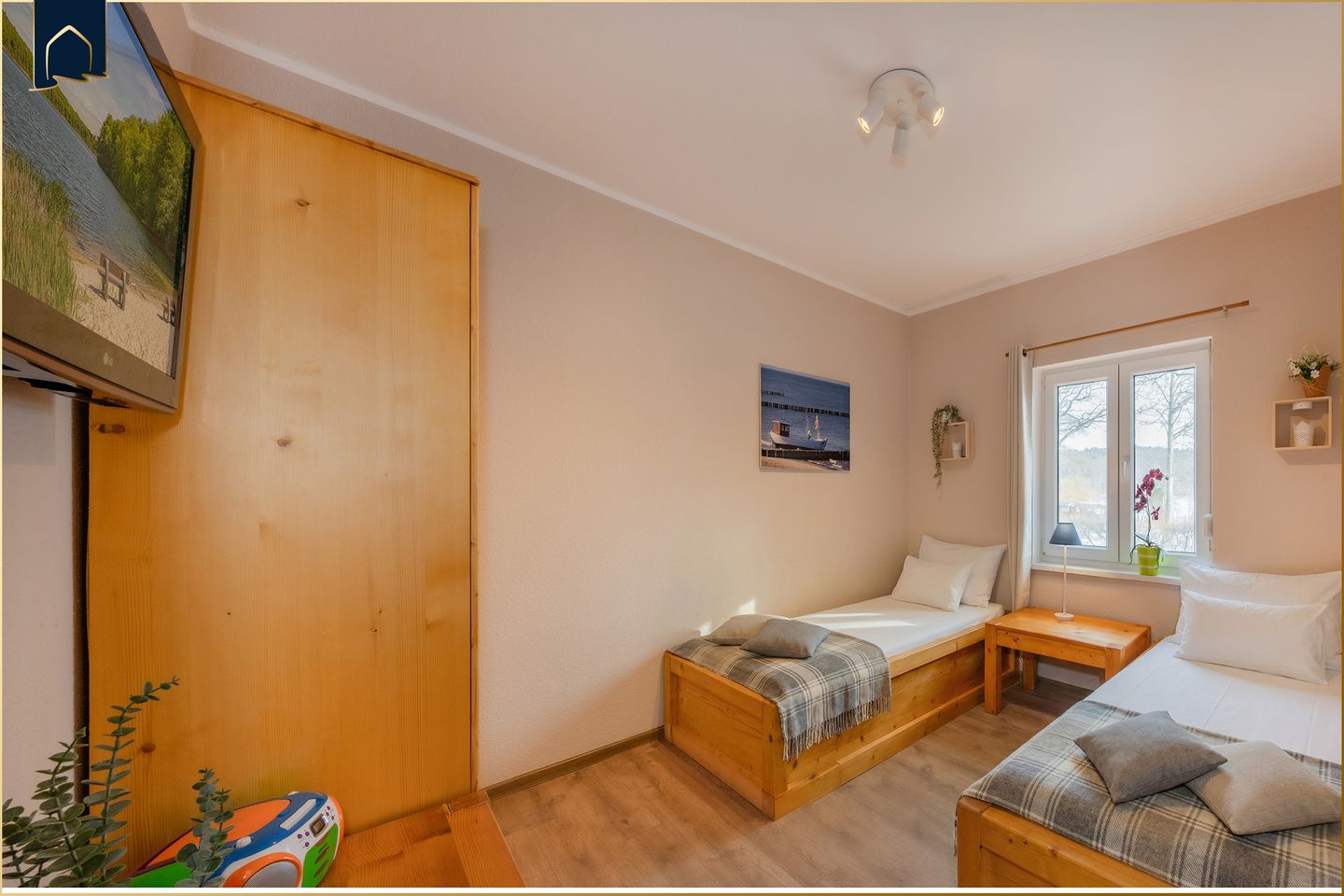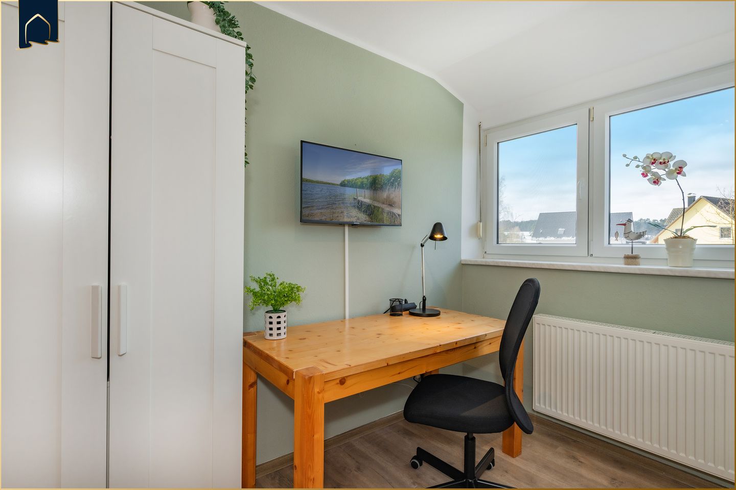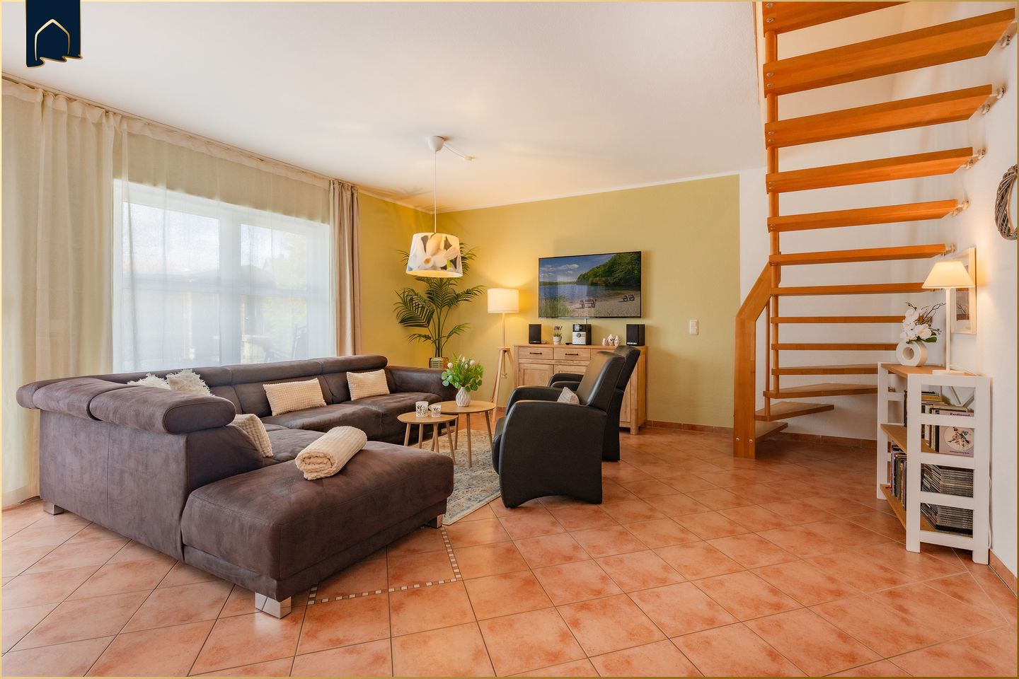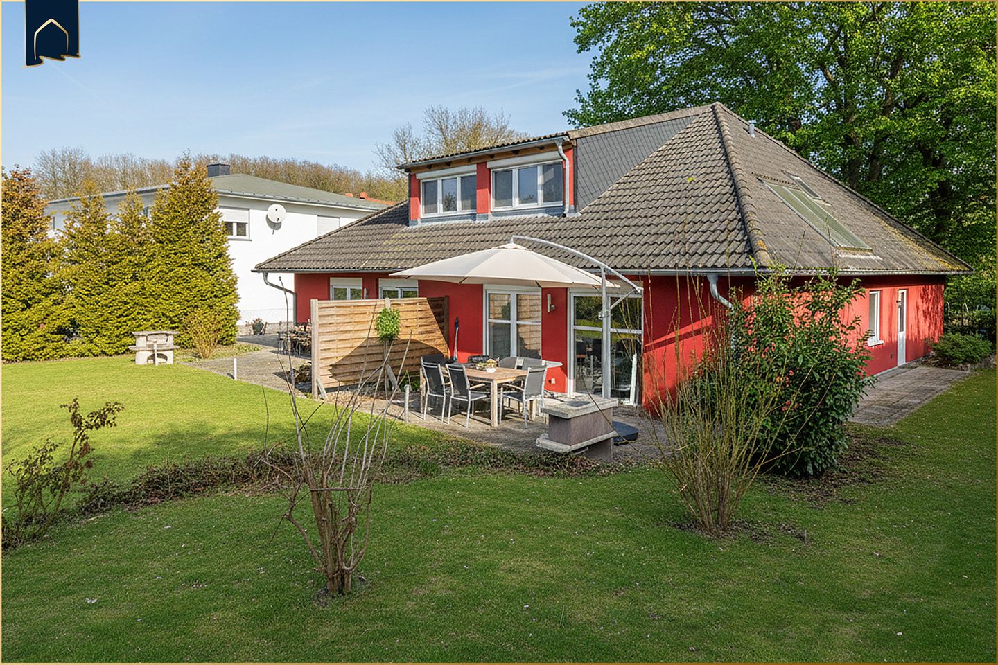 Insgesamt stehen vier Schlafzimmer, zwei Badezimmer mit Badewanne und Dusche sowie ein großzügiger Wohn- und Essbereich zur Verfügung. Große Fenster mit Sichtschutz sorgen für viel Tageslicht und gleichzeitig für Privatsphäre – ideal für Familien, die Wert auf Komfort und Rückzugsmöglichkeiten legen.