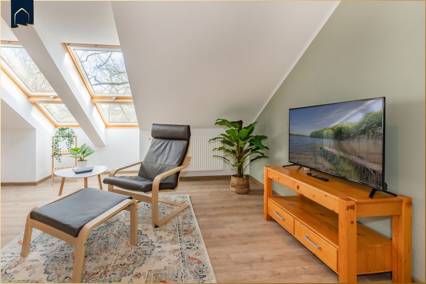 Die voll ausgestattete Küche bietet alles, was Sie für die Selbstverpflegung benötigen: Herd, Backofen, Mikrowelle, Kühlschrank mit Gefrierfach, Kaffeemaschine, Toaster sowie umfangreiche Küchenutensilien. Der angrenzende Essbereich lädt zu gemeinsamen Mahlzeiten ein. Im gemütlichen Wohnzimmer mit Sofa, Sesseln, TV und WLAN lassen sich entspannte Abende verbringen. Eine Fußbodenheizung sorgt dabei ganzjährig für angenehme Wärme.