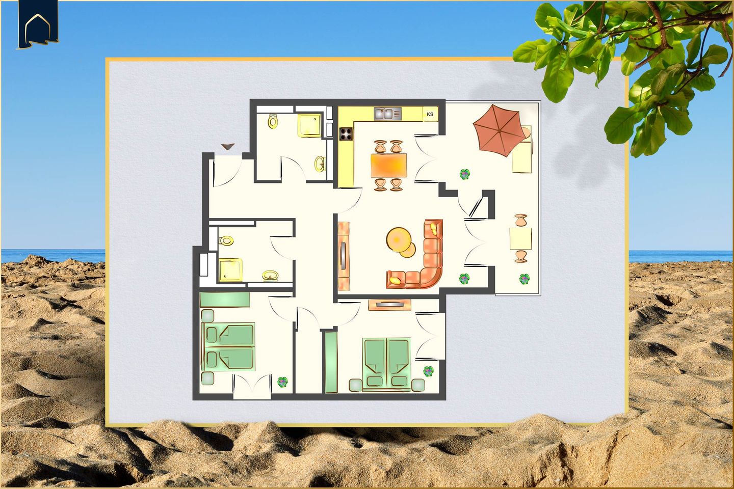 • 2 Schlafzimmer, 2 Bäder
