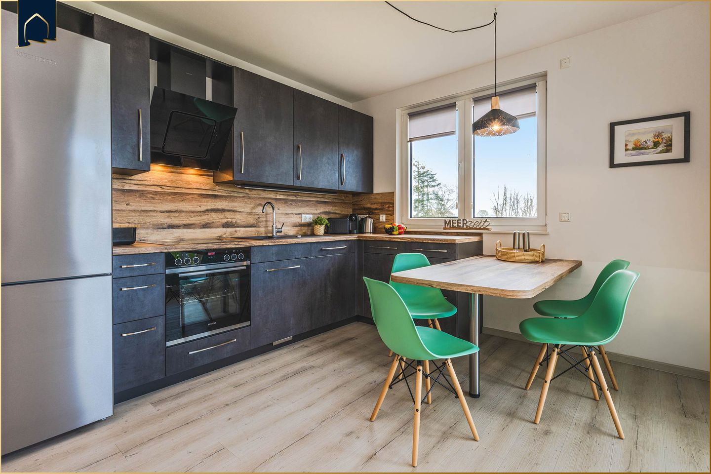 Dieses stilvolle Appartement bietet auf 61 m² den perfekten Rückzugsort für alle, die Ruhe, Natur und moderne Ausstattung miteinander verbinden möchten. Eingebettet in ein idyllisches Dorf und nur wenige Kilometer vom Meer, dem See und attraktiven Ausflugszielen entfernt, eignet sich die Unterkunft ideal für Paare, kleine Familien oder Alleinreisende. Die Wohnung liegt in einem gepflegten Mehrparteienhaus mit insgesamt drei Etagen und bietet über einen Balkon einen herrlichen Blick ins Grüne – ideal, um den Tag bei einem Glas Wein ausklingen zu lassen.