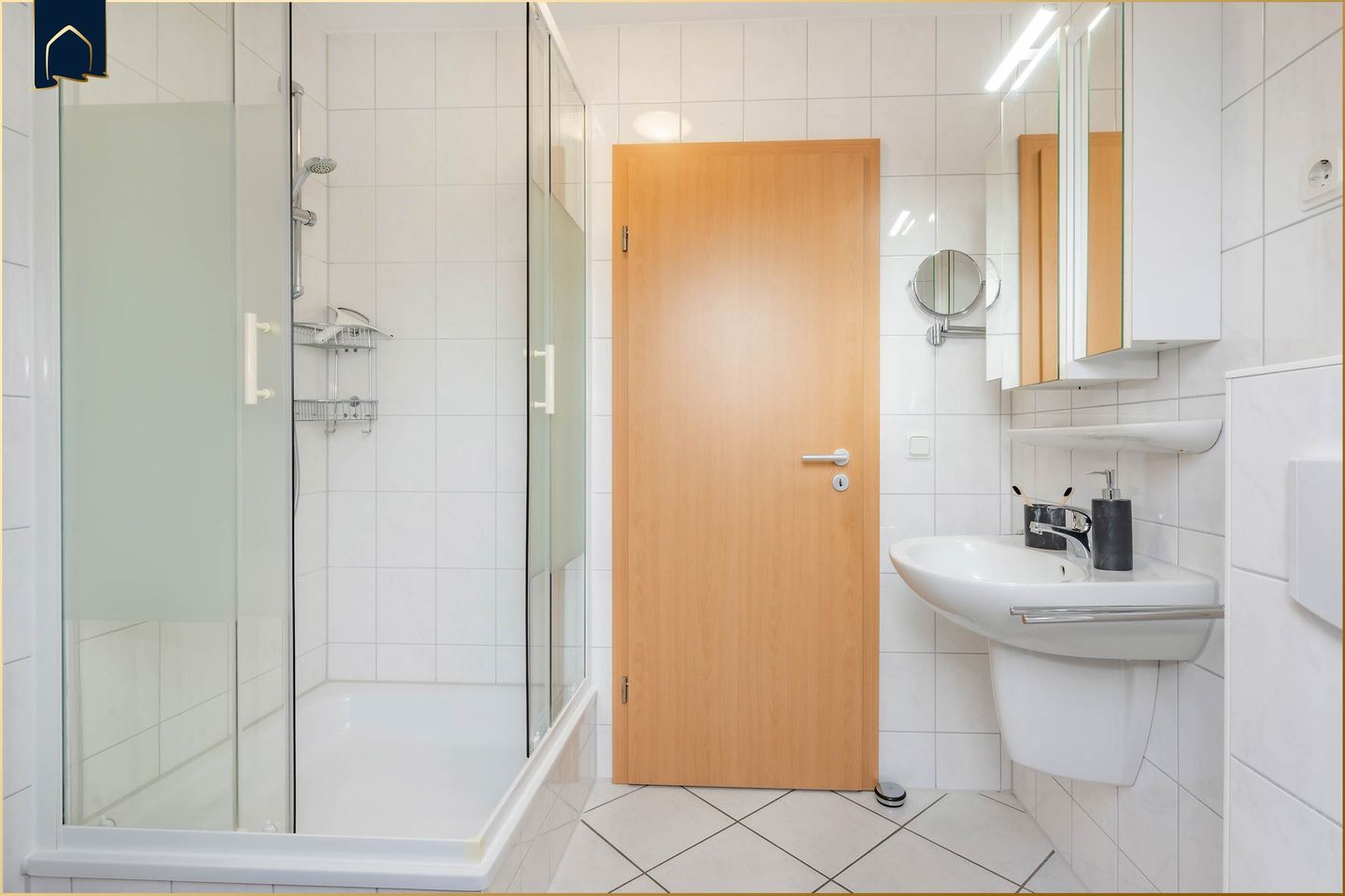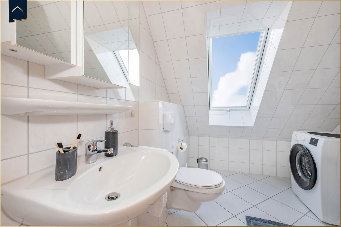 Das Badezimmer ist modern gestaltet und mit einer Dusche ausgestattet. Darüber hinaus steht Ihnen eine Waschmaschine zur Eigennutzung bereit, ergänzt durch einen Wäscheständer und einen Staubsauger für einen angenehmen und gepflegten Aufenthalt.