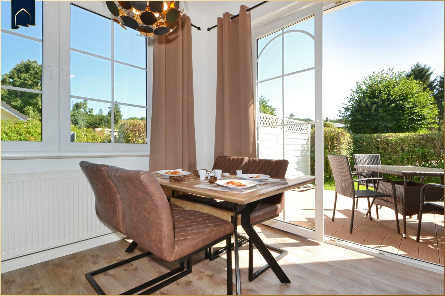 Ob sportlich, romantisch oder entspannt – diese Ferienwohnung bietet die perfekte Kulisse für jede Urlaubsform. Die Terrasse mit Windschutz, Sonnenschirm und Blick ins Grüne ist ideal für ruhige Nachmittage oder gesellige Abende. WLAN, ein modernes TV-System sowie Radio sorgen auch bei weniger gutem Wetter für Unterhaltung. Die Nichtraucherwohnung ist durchdacht ausgestattet und schafft mit klaren Linien, hellen Farben und viel Tageslicht ein modernes, freundliches Ambiente. Die Kombination aus Strandnähe, Natur und Komfort macht diese Unterkunft zum perfekten Rückzugsort auf Usedom – für einen erholsamen Urlaub zu jeder Jahreszeit.