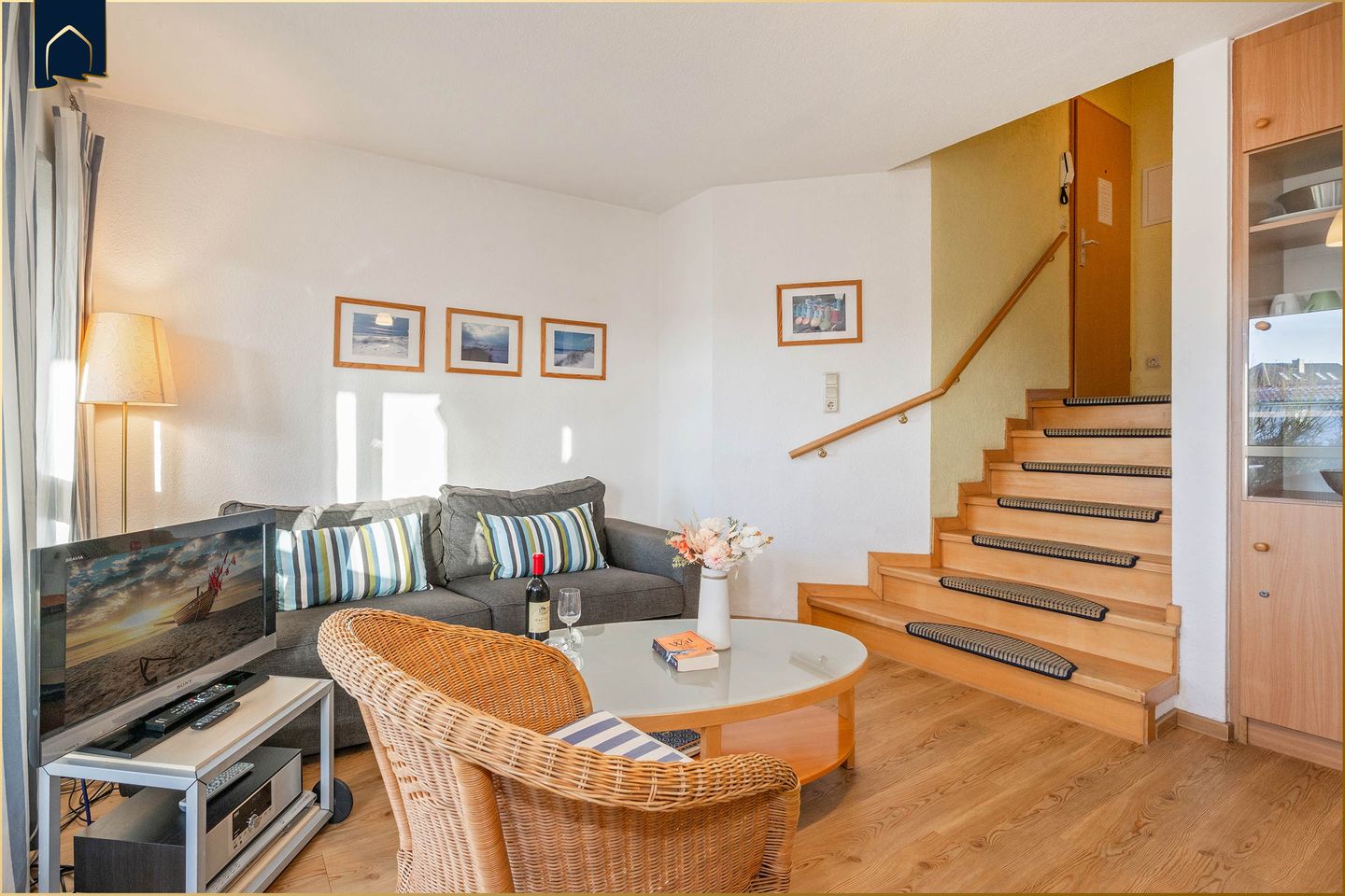 Die Unterkunft erstreckt sich über zwei Etagen und bietet Platz für bis zu vier Personen. Zwei gemütliche Schlafzimmer sorgen für erholsamen Schlaf, während das helle Wohnzimmer mit Sofaecke, TV und HiFi-Anlage zum Verweilen einlädt. Die komplett ausgestattete Küche mit Backofen, Herd, Kühlschrank, Geschirrspüler, Kaffeemaschine, Espressomaschine und Toaster lässt keine Wünsche offen. Im Badezimmer steht eine Dusche zur Verfügung. WLAN, Privatparkplatz, Waschmaschine, Wäscheständer sowie praktische Extras wie Fliegengitter, Steckdosensicherungen und Sichtschutz an allen Fenstern runden den Komfort ab.