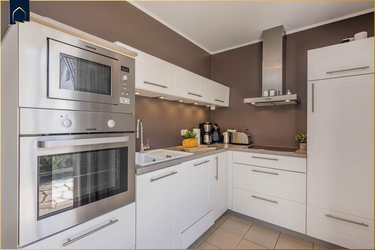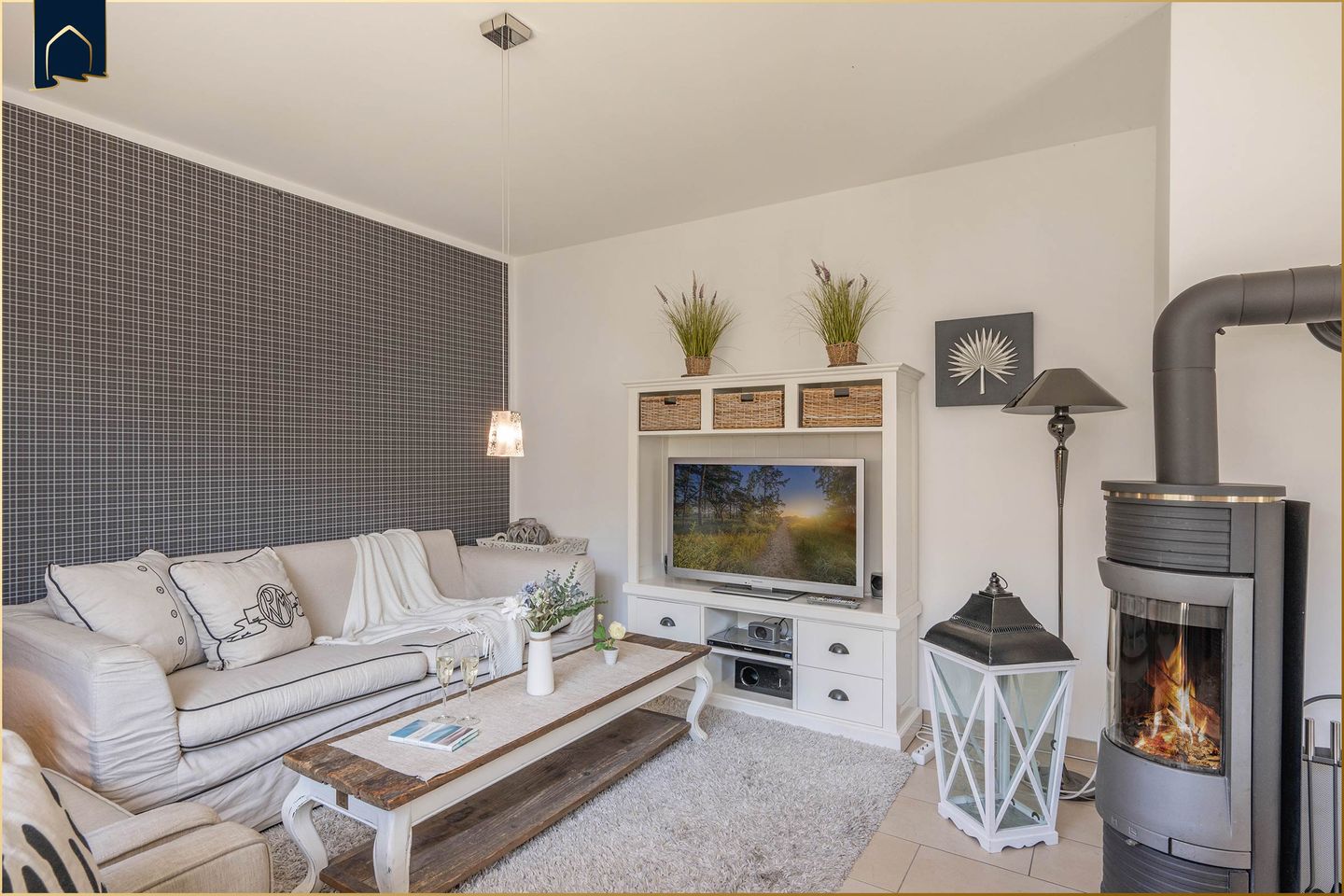Die voll ausgestattete Küche mit Backofen, Herd, Mikrowelle, Kaffeemaschine, Espressomaschine, Spülmaschine, Gefrierschrank und allen wichtigen Küchenutensilien lässt keine Wünsche offen. Ein geräumiger Essbereich lädt zum gemeinsamen Genießen ein. Im Wohnzimmer sorgen ein Kaminofen, gemütliche Sitzmöbel und ein großer digitaler TV für entspannte Abende.