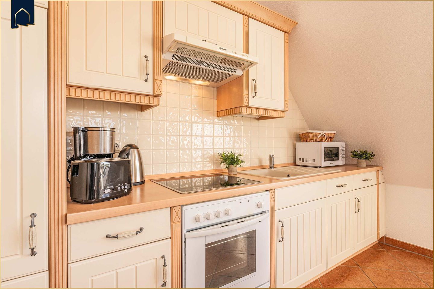 Die Ferienwohnung bietet eine angenehme Kombination aus Gemütlichkeit und Funktionalität. Der offene Wohnbereich mit integrierter Küche schafft eine helle, freundliche Atmosphäre – ein schöner Ort für gemeinsame Mahlzeiten oder entspannte Stunden auf dem Sofa. Auch bei weniger gutem Wetter sorgt die Sauna im Dachgeschoss für erholsame Momente. Dank durchdachter Ausstattung und ruhiger Lage ist die Unterkunft besonders bei Familien sehr beliebt.