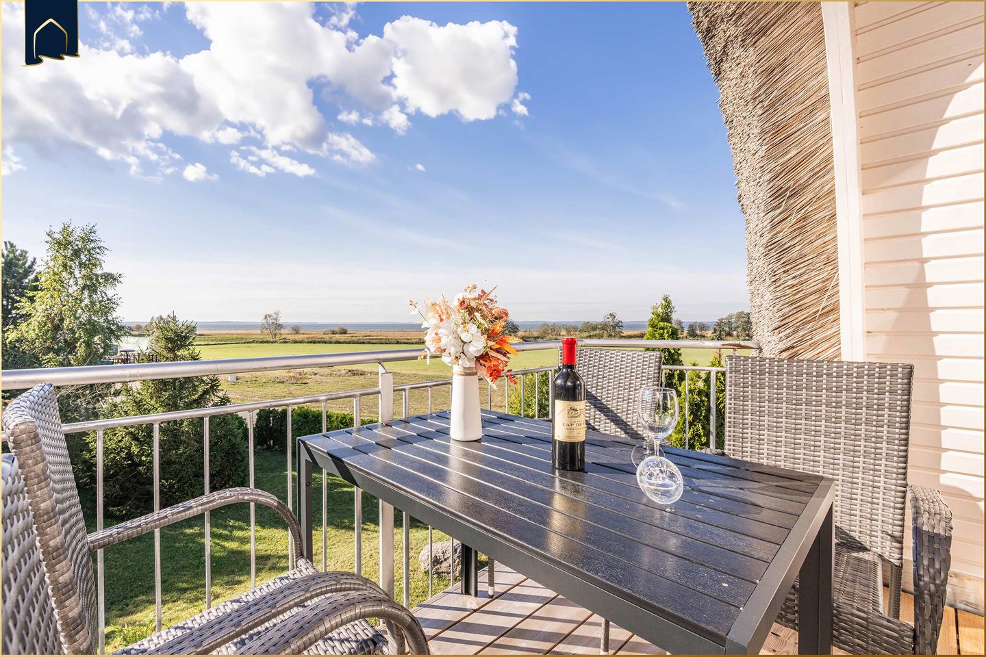 Diese liebevoll eingerichtete Ferienwohnung im idyllischen Ort Loddin bietet die perfekte Kombination aus Ruhe, Naturerlebnis und Komfort. Gelegen im Obergeschoss eines traditionellen Reetdachhauses erwartet Sie hier eine gemütliche Unterkunft mit Blick auf das Achterwasser. Die Ferienwohnung ist ca. 60 m² groß, bietet Platz für bis zu 4 Personen und ist ideal für Familien, Paare, Haustierbesitzer oder Ruhesuchende. Der helle Wohn- und Essbereich mit offener Küche, ein separates Schlafzimmer mit Doppelbett, ein weiteres Schlafzimmer mit zwei Einzelbetten sowie das Badezimmer mit Dusche sorgen für Komfort zu jeder Jahreszeit. Ein Highlight ist der überdachte Balkon mit Landschaftsblick – perfekt für den ersten Kaffee am Morgen oder entspannte Abende.