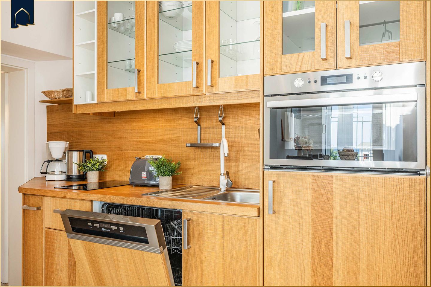 Voll ausgestattete Küche und gemütlicher Wohnbereich