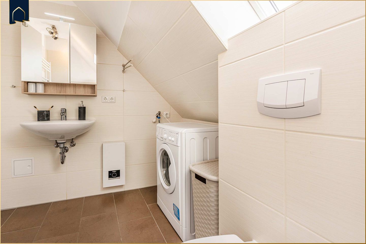 Die helle Küche ist komplett ausgestattet mit Backofen, Herd, Gefrierfach, Mikrowelle, Spülmaschine, Kaffeemaschine, Toaster und Wasserkocher. Der angrenzende Essbereich lädt zum gemeinsamen Frühstück oder Abendessen ein. Im Wohnzimmer sorgen Sofa, Sessel, TV, DVD- und CD-Player sowie Bücher und Spiele für entspannte Abende. Auch WLAN ist selbstverständlich vorhanden. Praktisch: Es steht ein eigener Parkplatz direkt am Haus zur Verfügung.