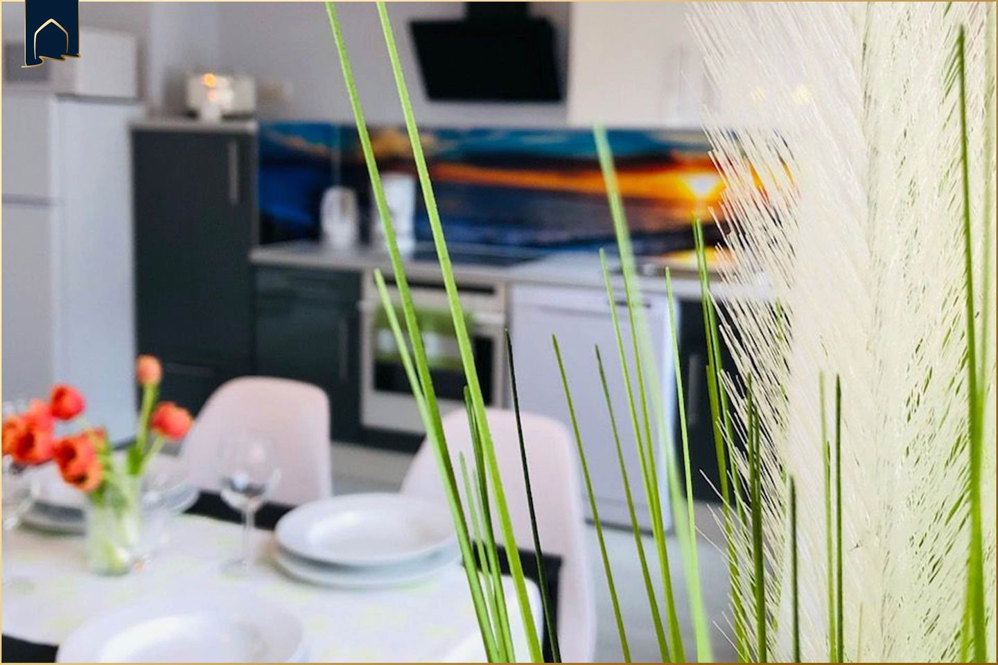 Hochwertige, geschmackvolle Einrichtung, vollausgestattete Küchen, Waschraum mit Waschmaschine, WLAN sowie Terrasse mit Grillplatz und Sitzmöglichkeiten gehören zu der Ausstattung der drei Ferienobjekte. Terrasse, Grillmöglichkeit und Fahrradschuppen befinden sich im Gartenbereich. Ein PKW-Stellplatz gibt es direkt am Haus.