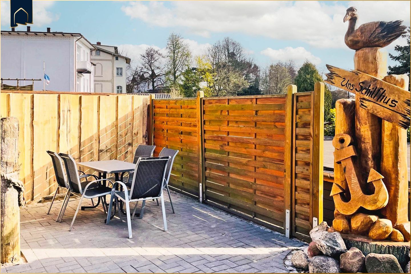 Hochwertige, geschmackvolle Einrichtung, vollausgestattete Küchen, Waschraum mit Waschmaschine, WLAN sowie Terrasse mit Grillplatz und Sitzmöglichkeiten gehören zu der Ausstattung der drei Ferienobjekte. Terrasse, Grillmöglichkeit und Fahrradschuppen befinden sich im Gartenbereich. Ein PKW-Stellplatz gibt es direkt am Haus.
