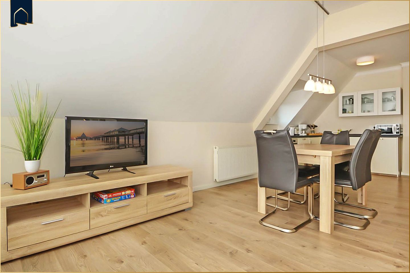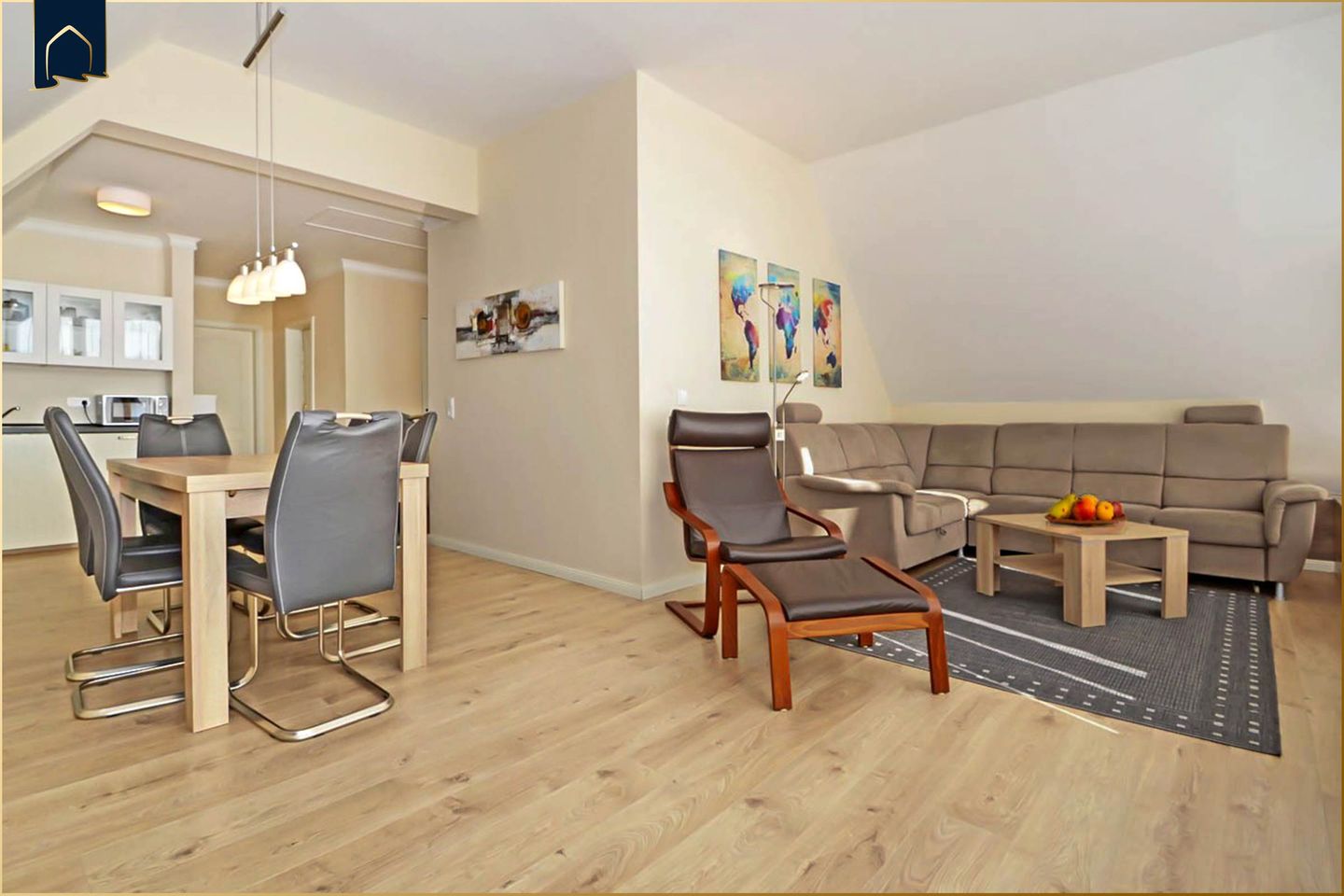 Diese stilvoll eingerichtete Ferienwohnung auf Usedom liegt nur 100 Meter vom feinsandigen Ostseestrand entfernt und bietet mit 63 m² Wohnfläche Platz für bis zu fünf Personen. Zwei gemütliche Schlafzimmer, ein modernes Badezimmer mit Dusche sowie ein heller Wohn- und Essbereich sorgen für angenehme Urlaubstage zu jeder Jahreszeit. Die Wohnung befindet sich in strandnaher Lage und eignet sich ideal für Paare, Familien oder Freunde, die Erholung und Komfort in bester Umgebung suchen.