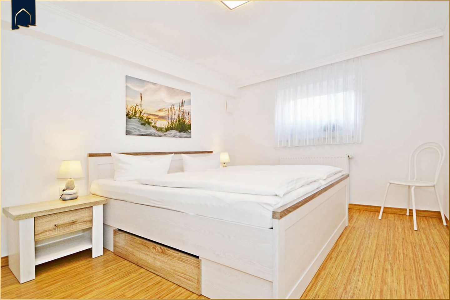Hochwertige, geschmackvolle Einrichtung, vollausgestattete Küchen, Waschraum mit Waschmaschine, WLAN sowie Terrasse mit Grillplatz und Sitzmöglichkeiten gehören zu der Ausstattung der drei Ferienobjekte. Terrasse, Grillmöglichkeit und Fahrradschuppen befinden sich im Gartenbereich. Ein PKW-Stellplatz gibt es direkt am Haus.