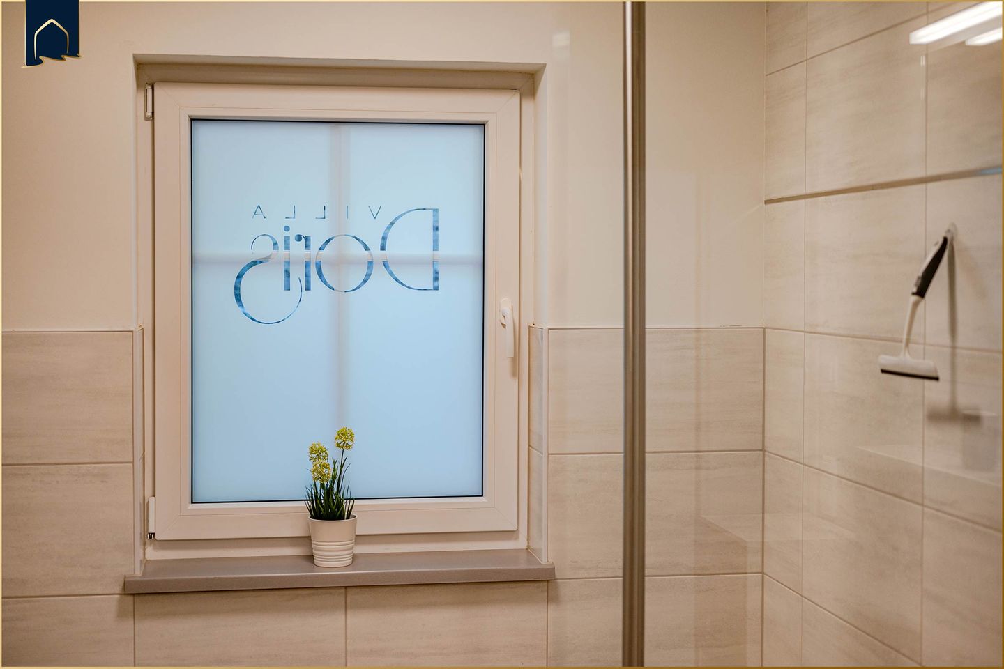 Die Villa Doris ist eine moderne Stadtvilla in ruhiger Ortsrandlage mit Anliegerstraße. Zum Ostseestrand gelangen Sie fußläufig in ca. 20 min (1,5 km). Die Ferienanlage ist im Jahr 2018 fertiggestellt worden und besteht aus einem Haupthaus mit 5 exklusiven Ferienwohnungen und drei hochwertigen Ferienbungalows. Von der Auffahrt mit ausreichend Stellplätzen zweigt sich zur rechten Hand der Kinderspielplatz und eine Grillstelle ab. Vor dem Haupthauseingang befindet sich eine Gemeinschaftslounge für ruhige Abendstunden. Zur Sonderausstattung der Villa gehört eine Sauna und ein Waschraum mit Waschmaschine und Trockner.