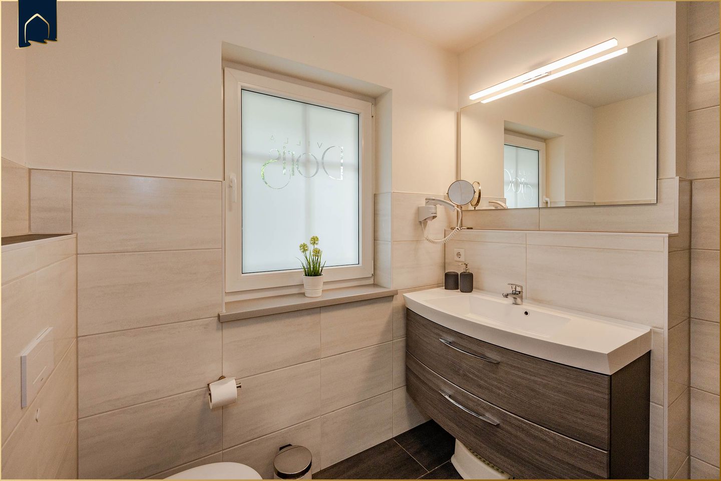 Die Villa Doris ist eine moderne Stadtvilla in ruhiger Ortsrandlage mit Anliegerstraße. Zum Ostseestrand gelangen Sie fußläufig in ca. 20 min (1,5 km). Die Ferienanlage ist im Jahr 2018 fertiggestellt worden und besteht aus einem Haupthaus mit 5 exklusiven Ferienwohnungen und drei hochwertigen Ferienbungalows. Von der Auffahrt mit ausreichend Stellplätzen zweigt sich zur rechten Hand der Kinderspielplatz und eine Grillstelle ab. Vor dem Haupthauseingang befindet sich eine Gemeinschaftslounge für ruhige Abendstunden. Zur Sonderausstattung der Villa gehört eine Sauna und ein Waschraum mit Waschmaschine und Trockner.