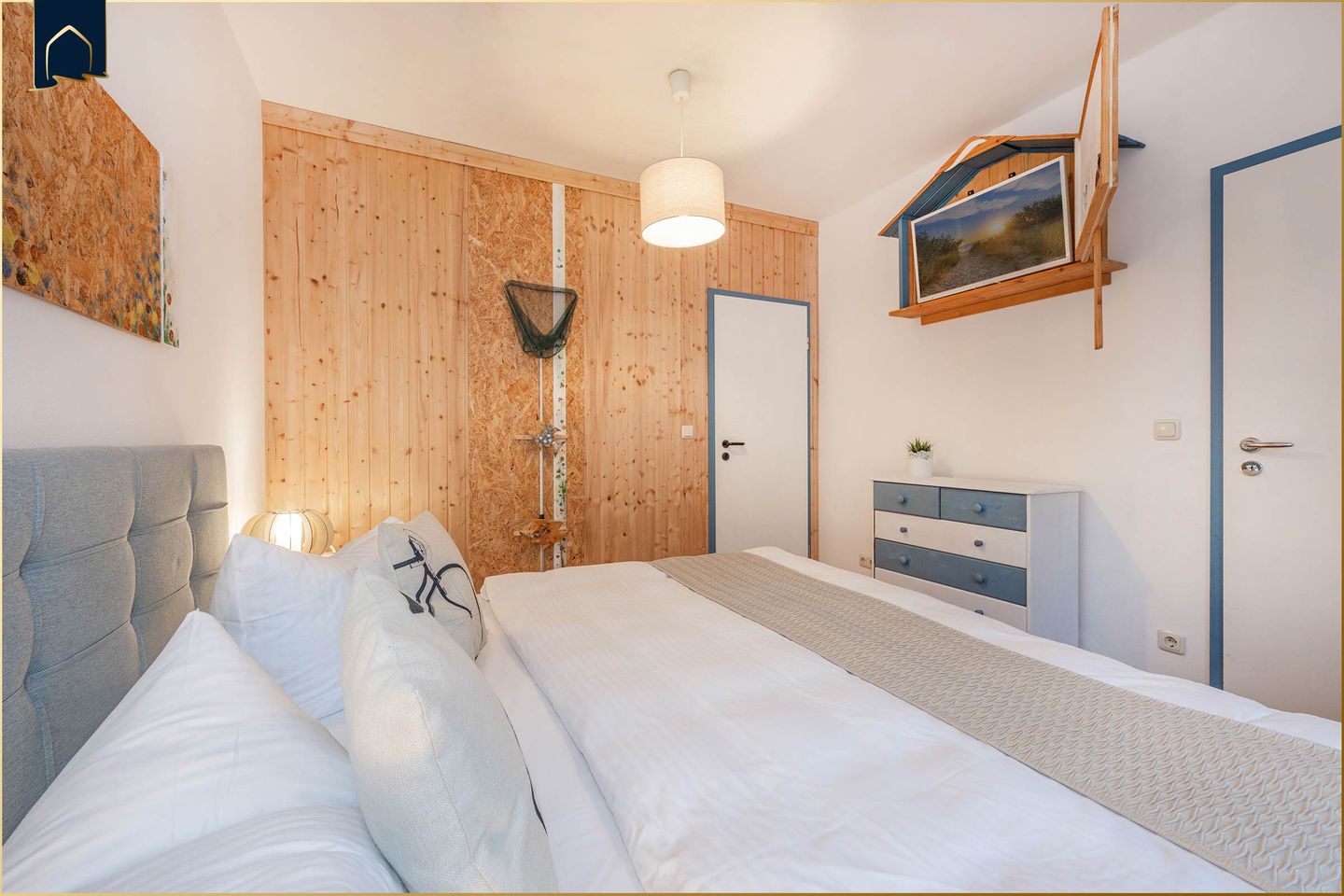 Auf zwei Etagen bietet das Ferienhaus vier komfortable Schlafzimmer, zwei moderne Badezimmer sowie eine voll ausgestattete Küche mit Backofen, Spülmaschine, Mikrowelle und Kaffeemaschine. Der gemütliche Wohnbereich mit Sofaecke, TV und Brettspielen lädt zu entspannten Abenden ein. Für Wellness sorgt die hauseigene Sauna zur Eigennutzung – besonders an kühleren Tagen ein echtes Highlight. Internet ist selbstverständlich vorhanden.